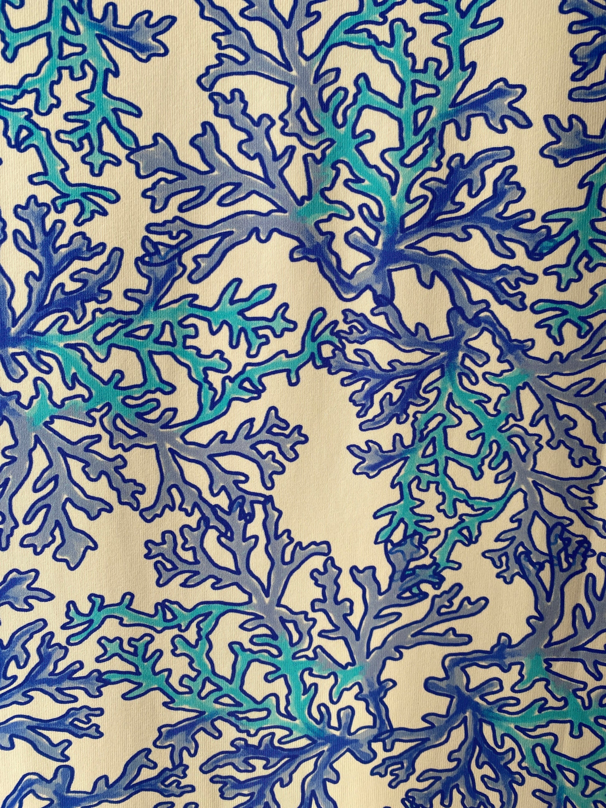 Shades of blue coral on white background. 92% Nylon 8% Spandex