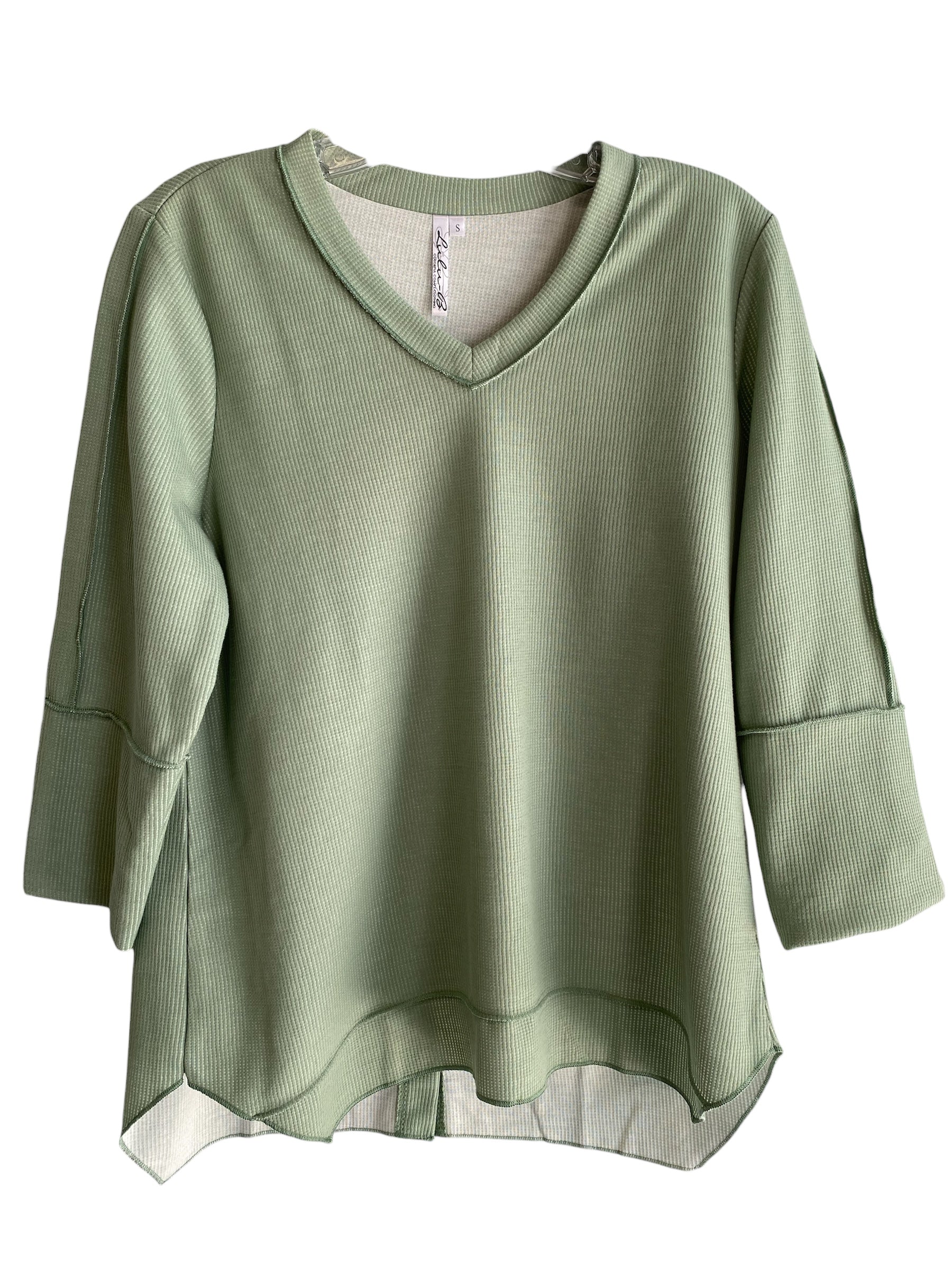 V-Neck Button Back Top-Sage